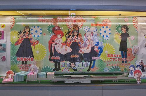 有馬温泉で2月3日に開催された「有馬節分会」に行って来ましたー! と言いながらいきなり谷上駅ショーウィンドウの写真ですが、実は今年の有馬節分会は「温泉むすめ」と北神急行がコラボ。当日は北神急行も特設ブースで記念グッズを販売したり、有馬輪花・楓…